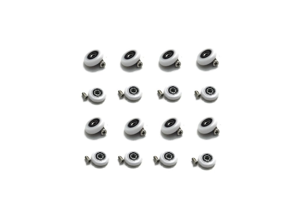 Przedmiotem oferty jest komplet 16 szt kółek łożyskowanych do rolek od kabiny prysznicowej plus śrubki (cena dotyczy 1 kompletu w skład którego wchodzi 16 szt kółek ze śrubkami) Jeśli np. wybierzesz 2 komplety tzn że kupujesz 32 szt kółek, wtedy cena x2)  kółko i śrubka widoczne na pierwszym, drugim i trzecim zdjęciu. Na czwartym i piątym zdjęciu pokazujemy przykładowe rolki i sposób wymiany kółka na nowe.  (Rolki są dostępne na naszych innych aukcjach)