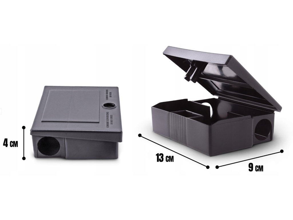 Deratizačný podávač MOUSE s rozmermi 10x13x4 cm je vyrobený z kvalitného polypropylénu a je najlacnejším dostupným zariadením tohto typu. Vyznačujú sa veľmi estetickým spracovaním a ľahkým používaním a čistením. Vďaka premyslenému dizajnu stanica dokonale chráni chemickú vložku - jed - pred vytiahnutím hlodavcami a navyše je odolná voči mechanickému poškodeniu a nepriaznivým poveternostným podmienkam. Zariadenie je tiež vybavené patentovým zámkom na ochranu pred neoprávneným prístupom.