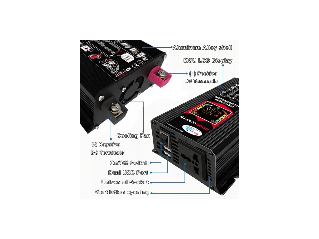 6000 W Auto menič 12 V na 220 V 50 HZ