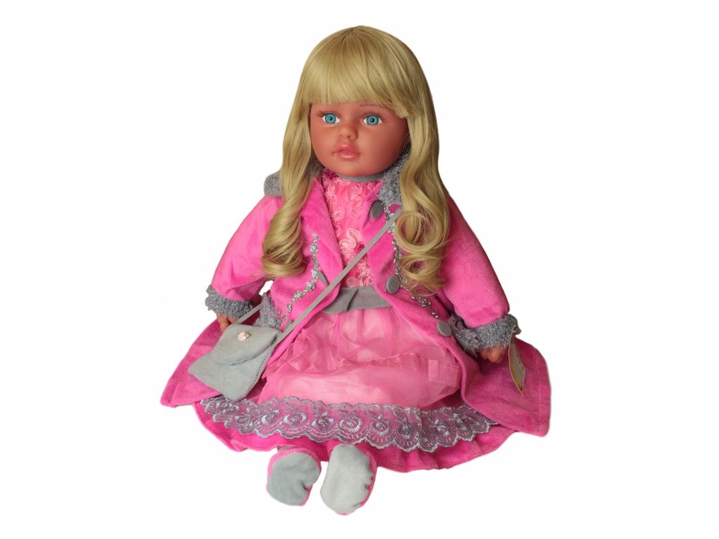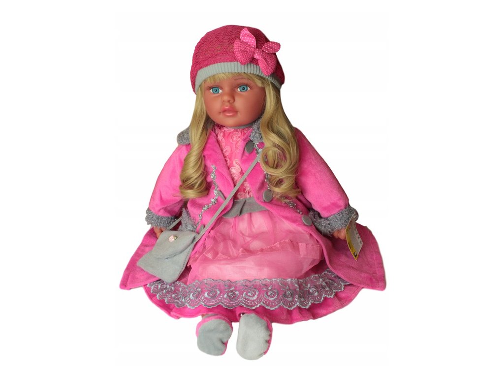 Po stlačení na brušku interaktívna bábika spieva a hovorí.