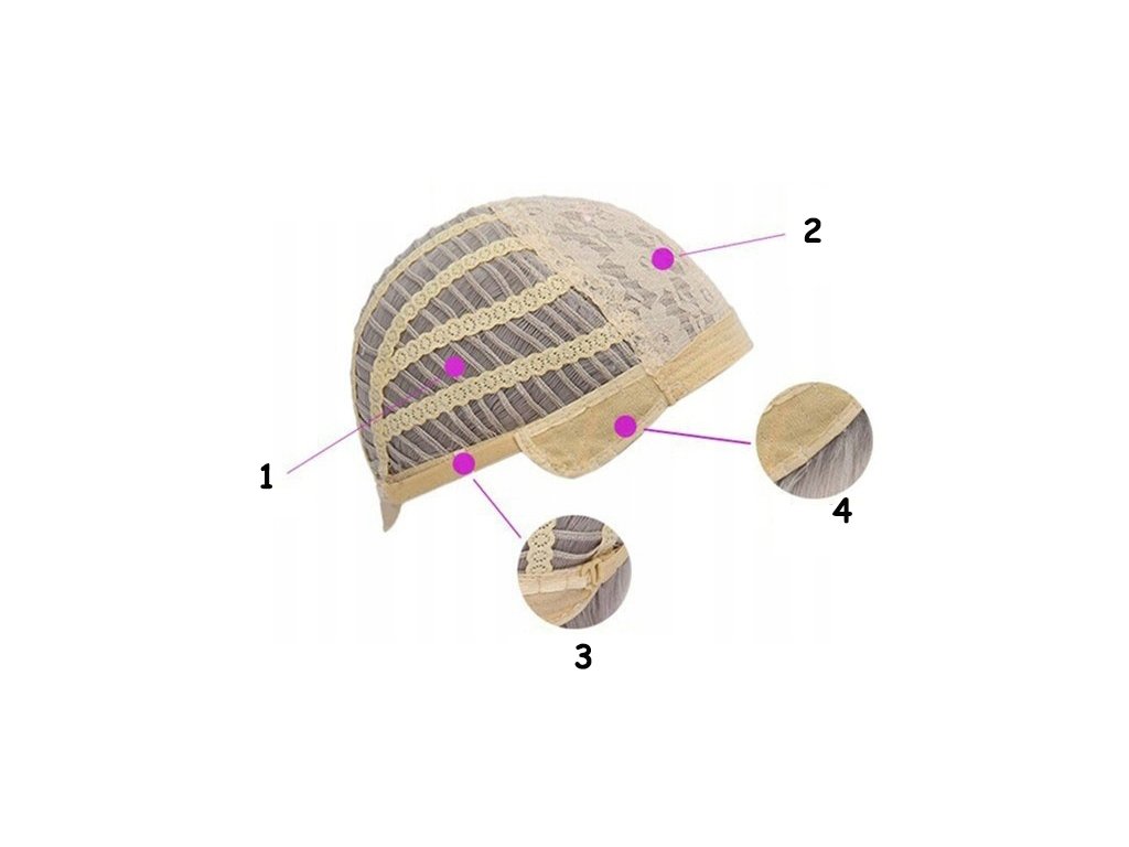 Vo vnútri vnútornej čiapky sú 2 nastaviteľné popruhy s háčikmi. Háčiky je možné pripevniť pomocou polohy ①-⑦, aby sa prispôsobili rôznym obvodom hlavy. (Toto je čistá vzorka. Farba sieťky s ružami parochne, ktorú dostanete, môže byť iná)