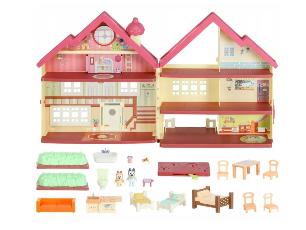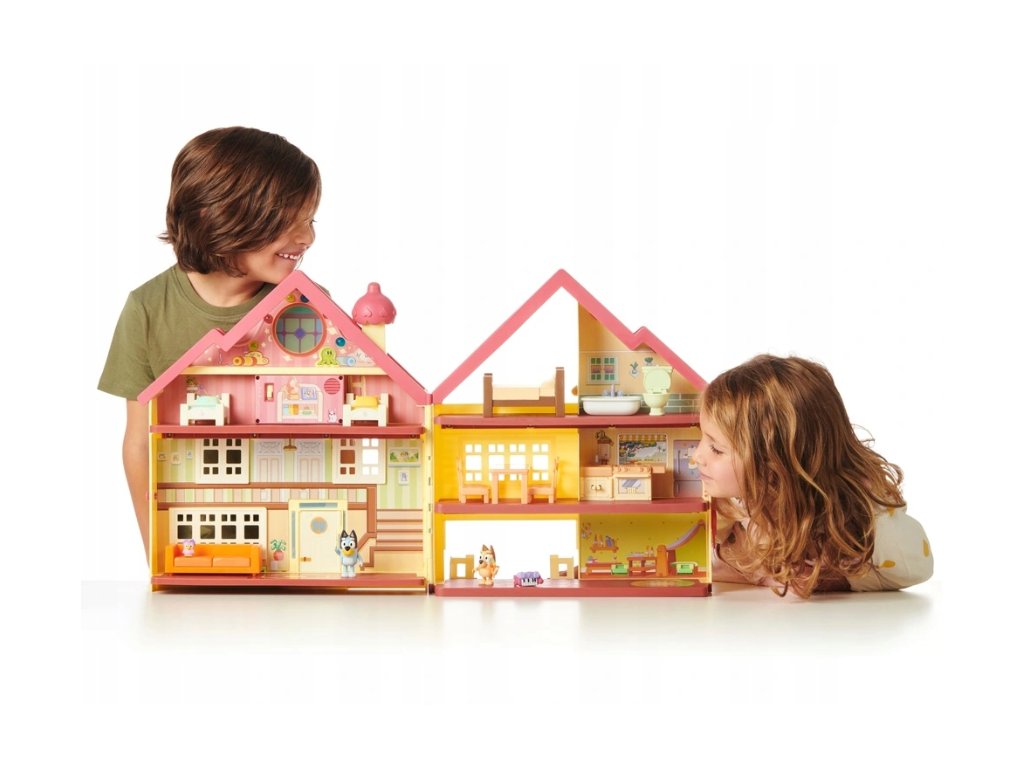 Zažite svoje obľúbené dobrodružstvá zo série v úžasnom Bluey svetelnom a zvukovom dome! Keď súpravu otvoríte, ukáže sa, že je neskutočne veľká - meria 43 cm na výšku a 76 cm na šírku! Táto sada plná funkcií je plne vybavená rovnakým nábytkom, aký vidíte na výstave! Na troch úrovniach nájdete spálňu, kúpeľňu, kuchyňu, jedáleň a samozrejme obývaciu izbu - je tu veľa čo objavovať!