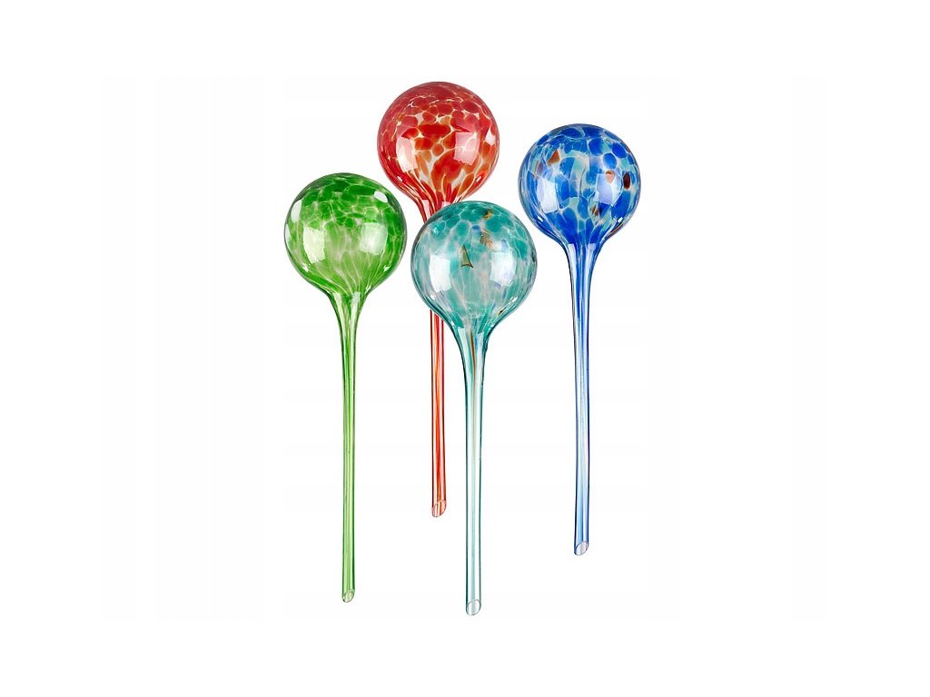 Kule do podlewania - zestaw 4 kolorowych kulek ze szkła, każda o pojemności 325 ml  - niemieckiej firmy Royal Gardineer