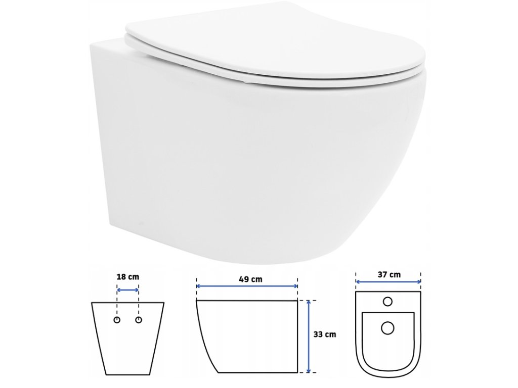 Misa WC Flat Rimless 100% ceramika sanitarna + Deska wolnoopadająca Duroplast