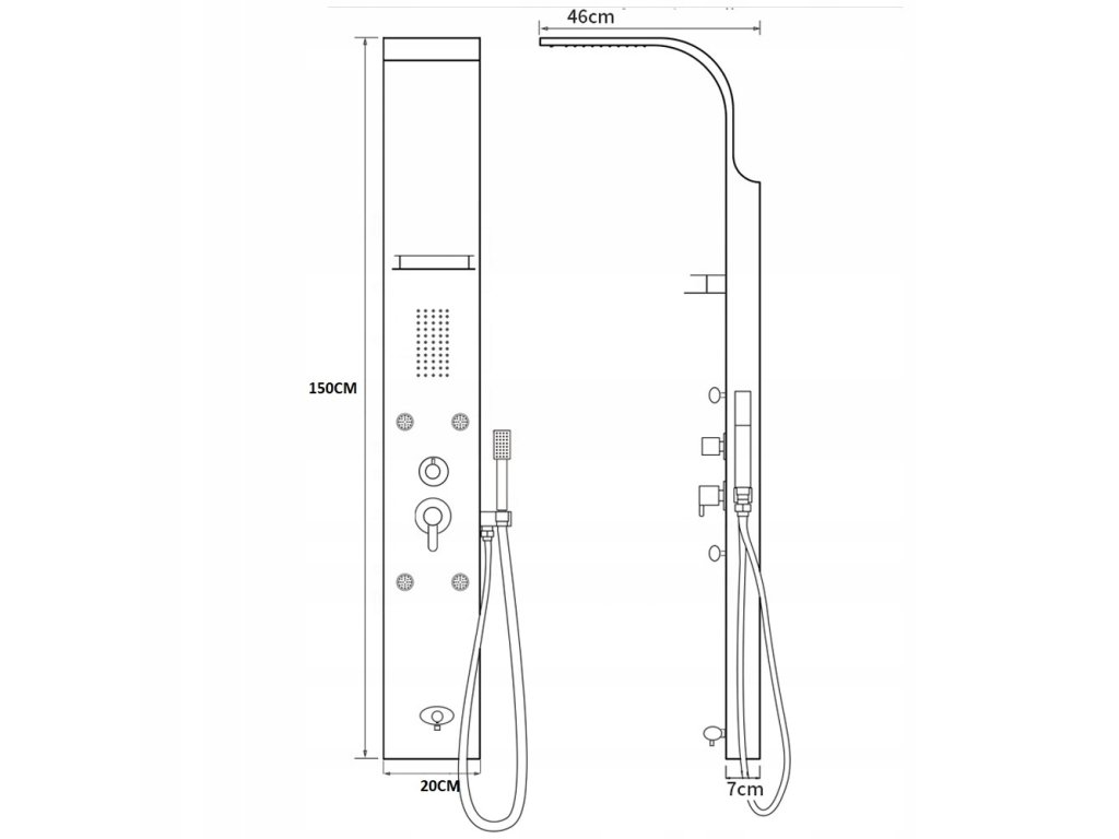 5 funkcyjny: wodospad, górny natrysk, hydromasaż(24 minidysze  + 4 duże dysze regulowane),  wylewka, ręczny natrysk słuchawkowy