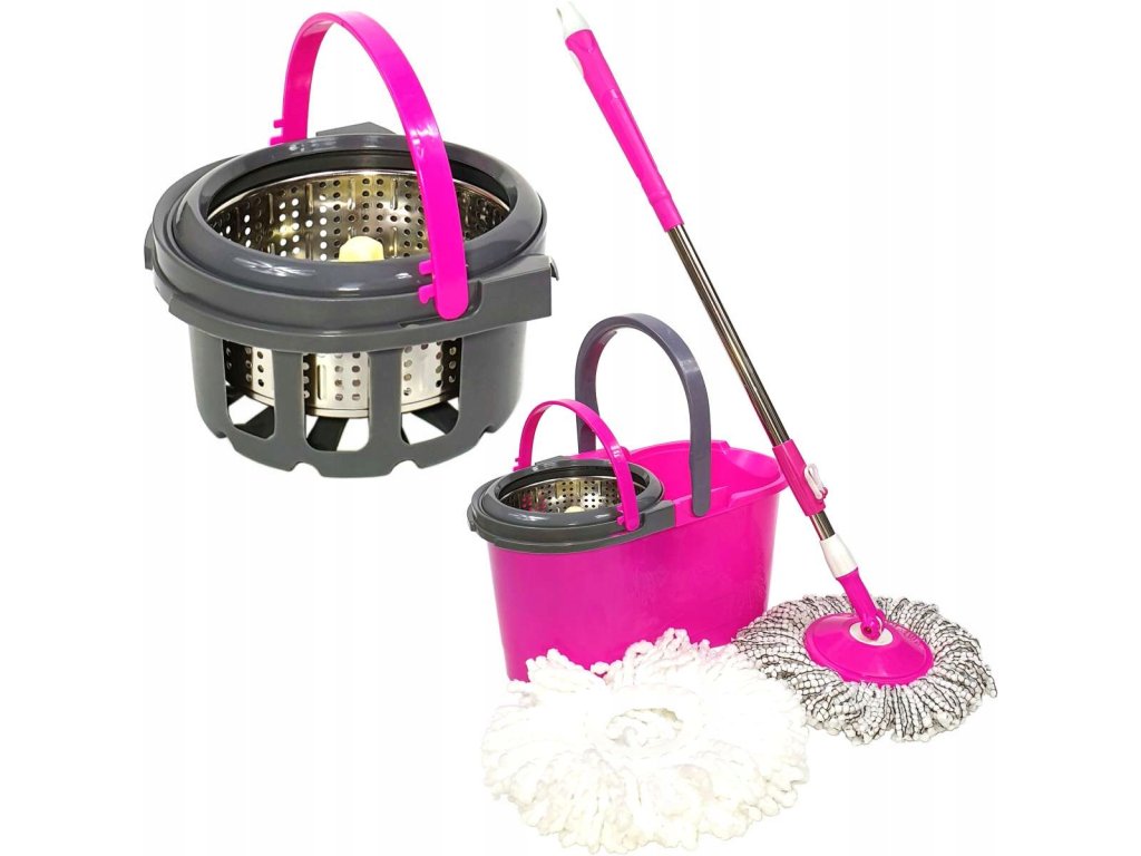 Súprava obsahuje vedro s oceľovým sitkom, palicu s otočnou hlavou a šesť čistiacich hrotov z mikrovlákna.