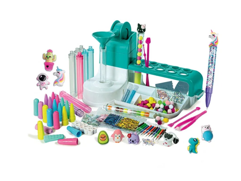 Táto nová vzrušujúca súprava umožňuje deťom popustiť uzdu svojej kreativite a prispôsobiť si každé pero pomocou rôznych doplnkov a dekorácií. Vďaka pohodlnej pracovnej stanici a sortimentu nástrojov, ktoré podporujú hru, umožňuje mladým mysliam objaviť a naplno prejaviť svoju kreativitu!