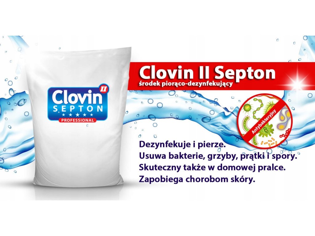 Uznanie profesjonalistów Clovin II Septon, wytwarzany i sprzedawany w branży pralnictwa przemysłowego od 2000 roku, jest obecnie stosowany w ponad 200 profesjonalnych pralniach oraz w tysiącach prywatnych domów. Ten proszek do dezynfekcji prania produkowany jest w zgodzie z normami ISO 9001 i ISO 14000. Clovin II Septon posiada certyfikat CE i jest wyrobem medycznym.