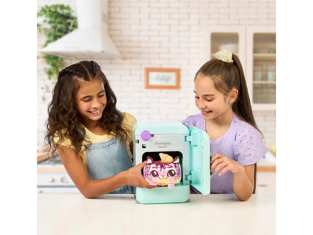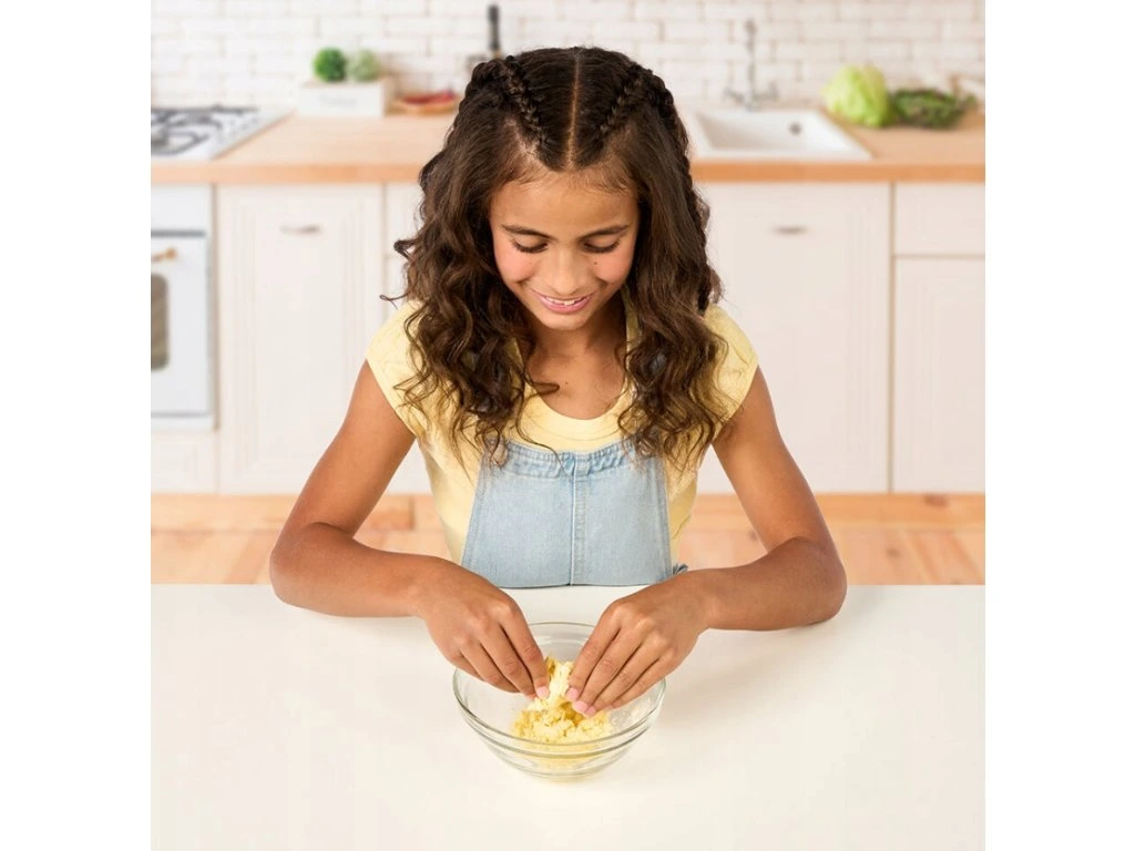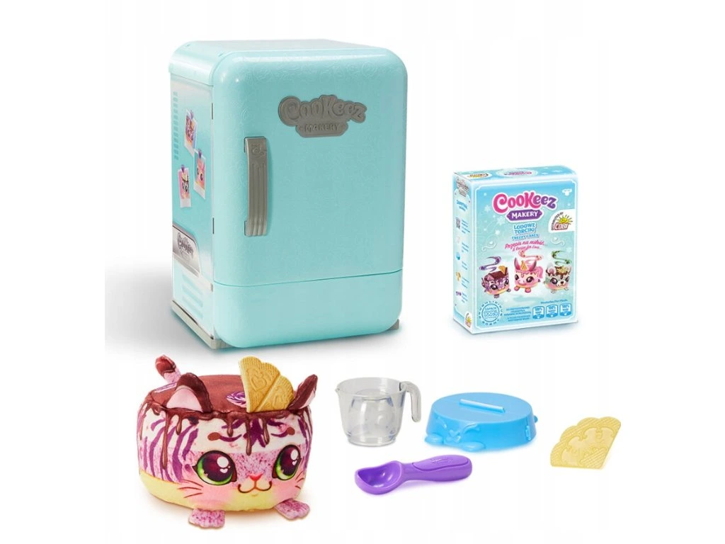 Suroviny zmiešame, vymiesime cesto a dáme do formy, potom ozdobíme vrstvou slizu a oblátkou. Pripravený koláč vložte do chladničky. Nastavte teplotu v chladničke na -10 stupňov a zatvorte dvierka. Počkajte 20 sekúnd... WOW! Voňavý a chvejúci sa maskot koláč je pripravený! Objímte maskota, aby sa prestal triasť od zimy. Potrebuje vaše teplo a lásku! Maskot vydáva vtipné zvuky a vonia tak lahodne! Objaviť môžete 3 rôzne dizajny tort maskotov: čučoriedkového tigra, jahodového jednorožca a mätového medvedíka Polarnika. Možné opakovanie hry. Obsah balenia: 1 chladnička, 1 maskot prekvapenia, 1 vrecúško miešacích ingrediencií, 1 vrecúško dekoračných ingrediencií, 1 čajová lyžička, 1 formička, 1 odmerka, 1 dekoračný doplnok, 1 manuál Batérie: vyžaduje 3x AAA batérie. Vrátane batérií.