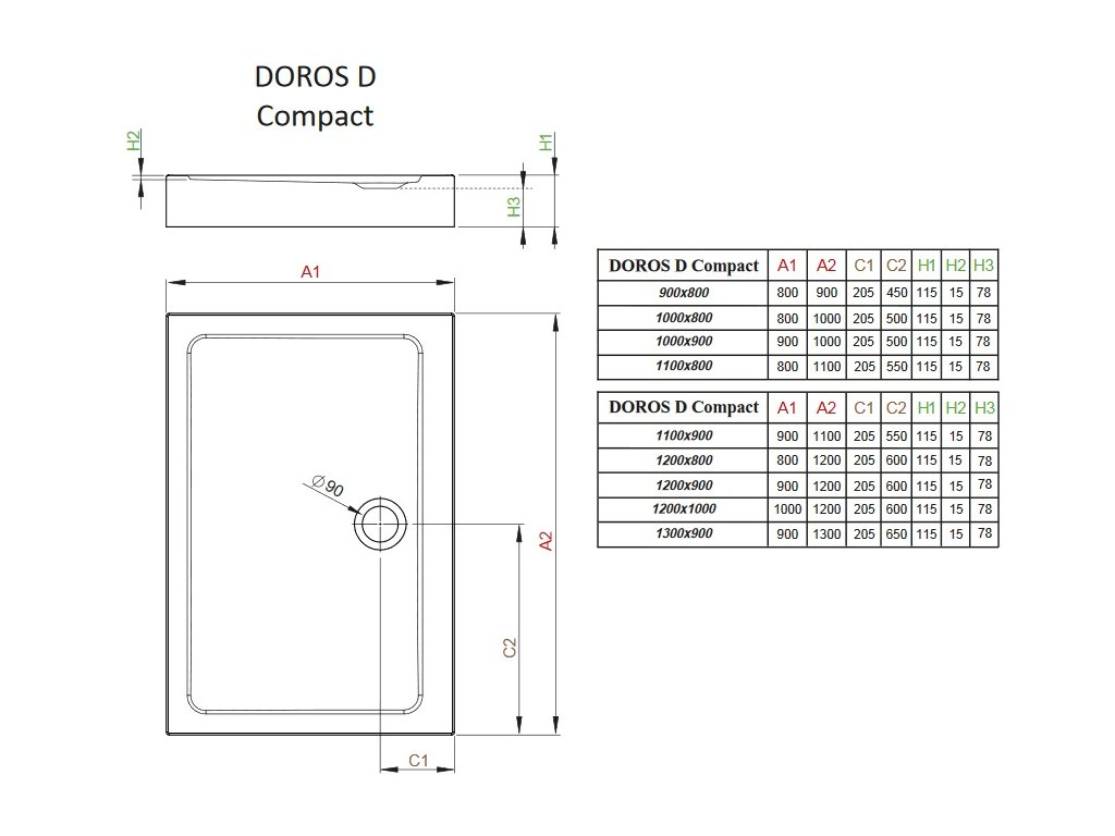 • Odpływ o średnicy 90 mm.
