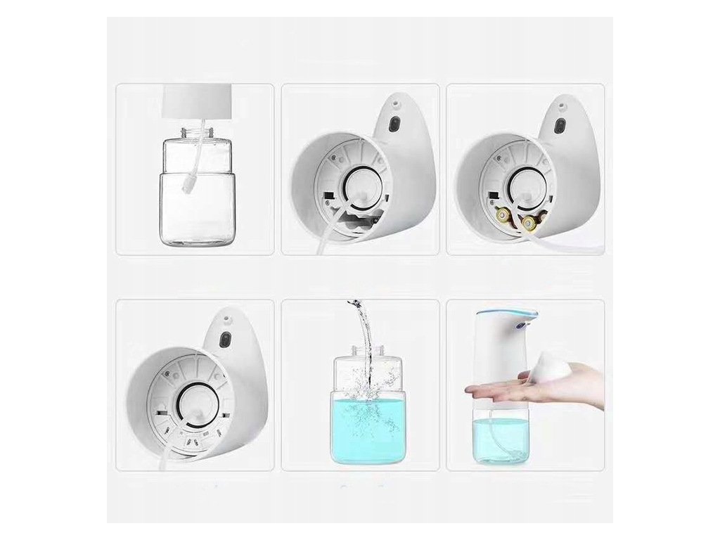 Uzupełnianie mydła jest bardzo proste wystarczy tylko odkręcić zbiornik. Dzięki zasilaniu na baterie nie trzeba martwić się o podłączenie do prądu.