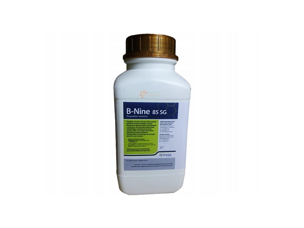 Środek B - NINE 85 SG jest środkiem z grupy regulatorów wzrostu i rozwoju roślin występującym w postaci granulatu rozpuszczalnego w wodzie. Środek B-Nine 85 SG stosuje się w uprawie złocieni doniczkowych i poinsecji w celu skrócenia międzywęźli, umożliwiając uzyskanie korzystnego pokroju roślin, oraz zwiększenie równomierności wzrostu i kwitnienia.
