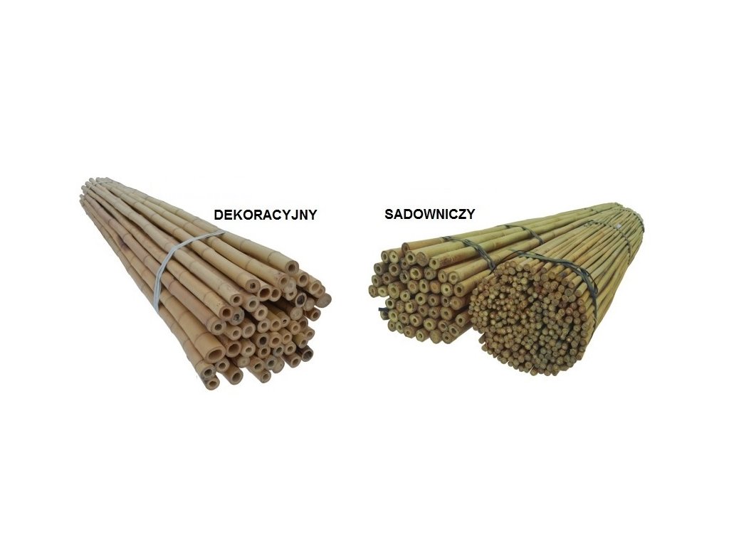 W naszej ofercie znajdą Państwo dwa gatunki bambusa.                         Pierwszy  (sadowniczy) idealny jako podpora dla roślin i zastosowań na zewnątrz ( barwa brązowo - zielona, grube ścianki, gładkie kolanka, wytrzymują  bardzo długo na zewnątrz ) - wszędzie gdzie nie jest to wyraźnie zaznaczone sprzedajemy właśnie ten gatunek .