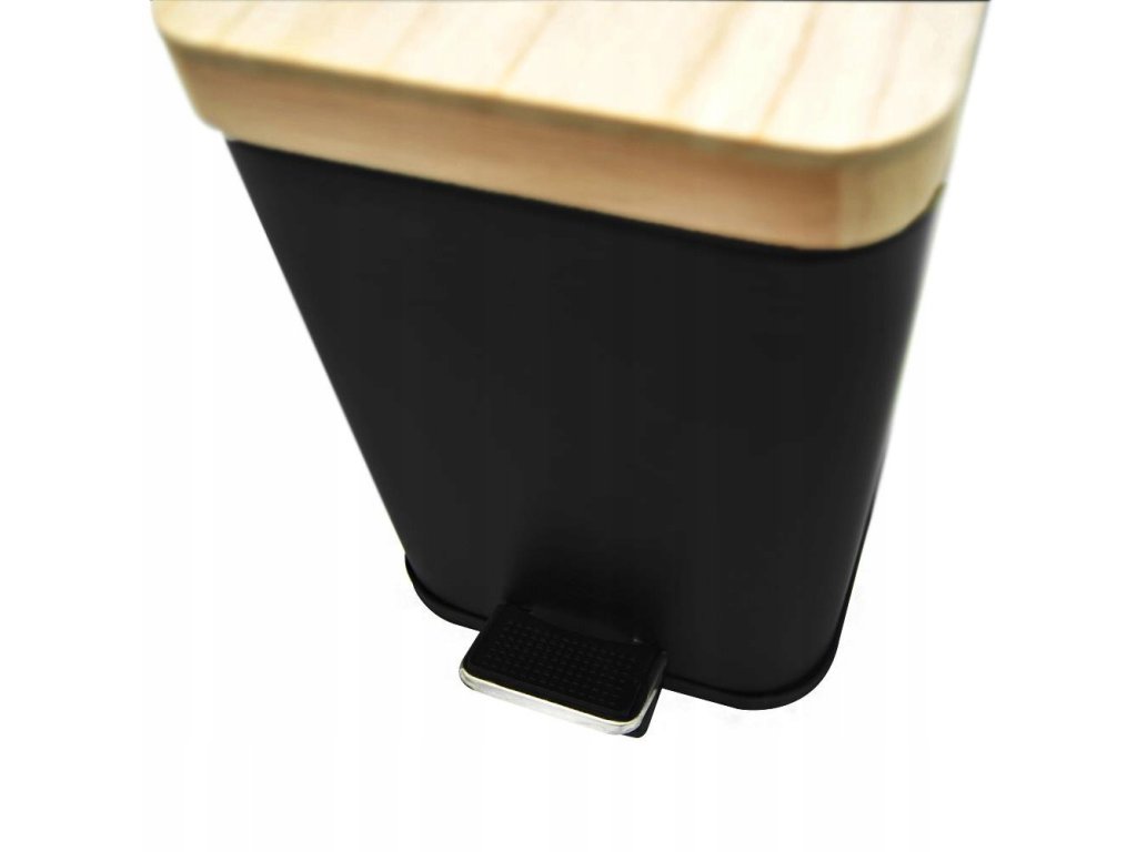 - Kosz na odpady wykonany z metalu malowanego proszkowo na czarno oraz drewna bambusowego.