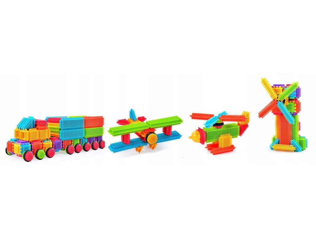 • Komplet klocków z tworzywa sztucznego , bardzo lekkie i super trwałe z których można tworzyć niesamowite budowle.