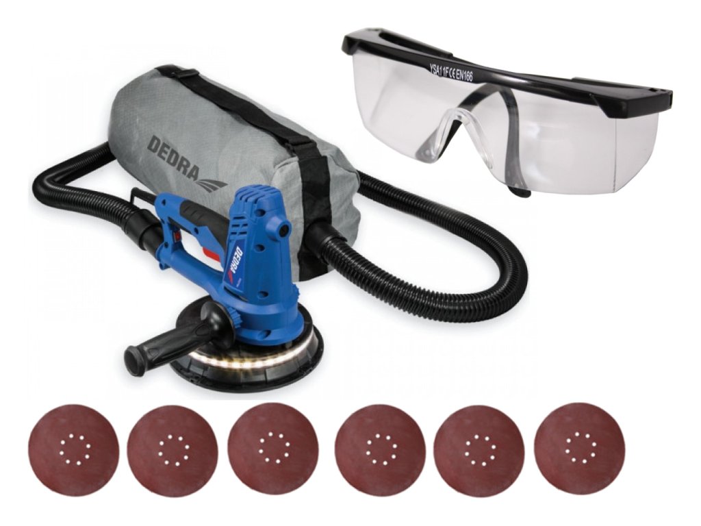 Przedmiotem aukcji jest wysokiej jakości szlifierka bezpyłowa firmy DEDRA model DED7764. Urządzenie przeznaczone jest do szlifowania tynków i gładzi gipsowej.