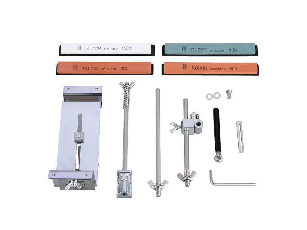 Zestaw zawiera cztery kamienie o gradacji 120, 320, 600, 1500, dzięki którym jesteśmy w stanie wykonać pełen cykl ostrzenia lub naprawy uszkodzonej krawędzi tnącej.