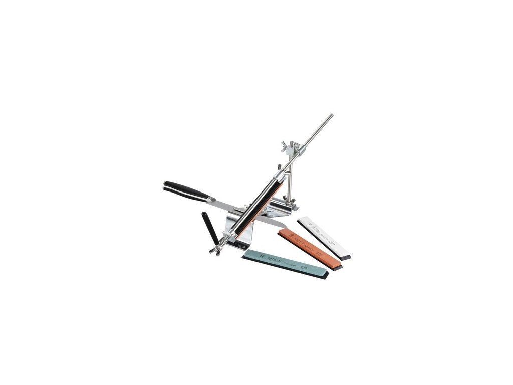 Zestaw jest tak skonstruowany aby proces ostrzenia przebiegał w bezpieczny i wygodny sposób. System podstawy pozwala na stabilne przymocowanie noża/nożyc i dostosowanie odpowiedniego kąta ostrzenia oraz ustawienia wygodnego kąta całego systemu ostrzącego