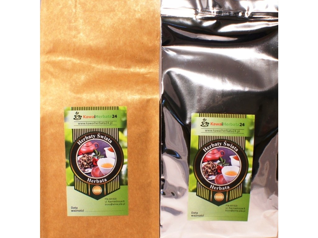 Herbata pakowana jest w 1 kg torby z folii aluminiowej zgrzewalnej lub torby papierowe powlekane wewnętrznie cienką folią zgrzewalną (wersja EKO). Torby oznakowane są estetyczną etykietą firmową i etykietą indywidualną z krótkim opisem produktu i przepisem parzenia. Torby zamykane są szczelnie wielopunktowym zgrzewem termicznym i wysyłane w opakowaniu kartonowym wyściełanym folią bąbelkową.