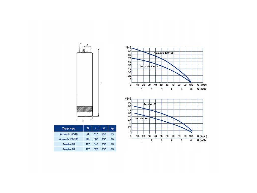 Wielostopniowe pompy odśrodkowe typu ACUASUB i ACUATEC przeznaczone są do pompowania czystej wody lub nieagresywnych cieczy o temperaturze do 40ºC. Zawartość piasku w tłoczonej cieczy nie może przekraczać 60gr/m³. Stosowane są głównie w instalacjach wodociągowych domów jedno- i wielorodzinnych, gospodarstwach rolnych, ogórdkach działkowych, zakładach przemysłowych lub rzemieślniczych w szczególności tam, gdzie lustro wody w studniach rurowych lub kręgowych utrzymuje się poniżej 8m lub sezonowo spada poniżej tego poziomu, uniemożliwiając zastosowanie pomp
