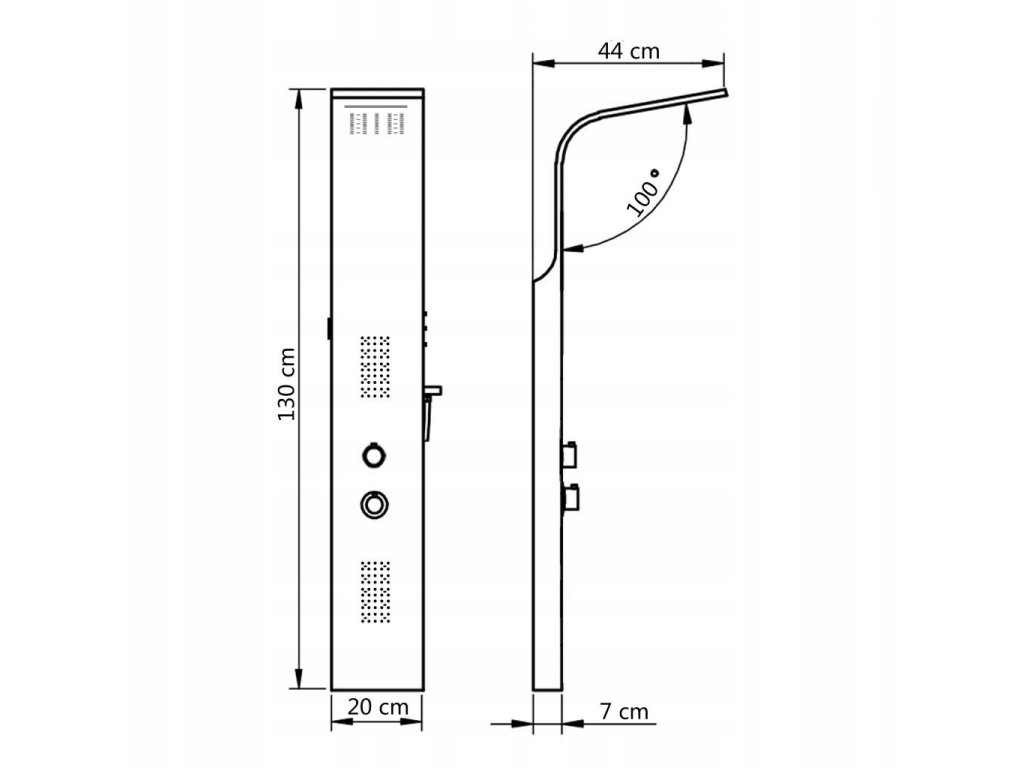 Czarny Aluminiowy Panel Prysznicowy 20x44x130cm