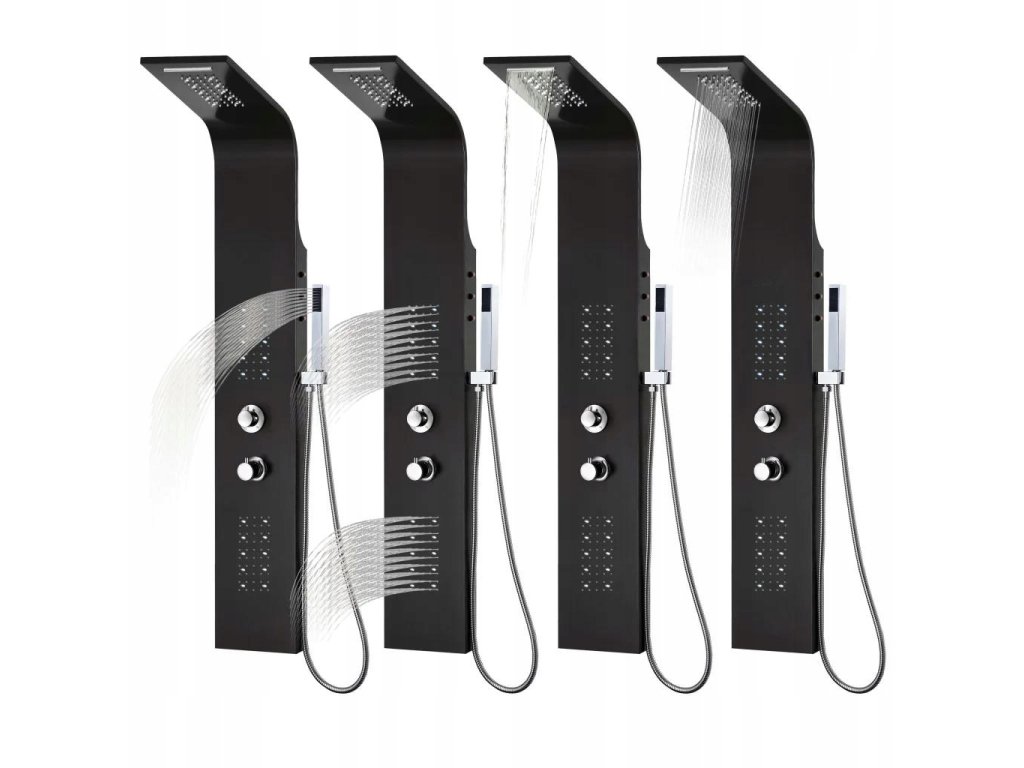 Čierny hliníkový sprchový panel 20x44x130cm