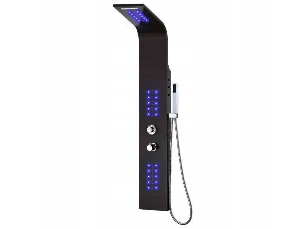 Wielofunkcyjny panel prysznicowy ma stylowy design, dzięki czemu będzie doskonałym uzupełnieniem Twojej łazienki. Panel prysznicowy wykonano z trwałego i odpornego na rdzę aluminium. Wyposażono go w 30 wodoodpornych diod LED w deszczownicy i dyszach do masażu, zapewniając nastrojowe oświetlenie. Produkt oferuje 4 formy prysznica do wyboru: deszczownicę, wodospad, dysze do masażu strumieniami wody oraz ręczną słuchawkę. Silikonowe dysze są odporne na osadzanie się kamienia. Pozwól sobie na prawdziwie relaksujący prysznic i ciesz się nowoczesnym stylem tego panelu prysznicowego! Montaż jest prosty. W skład przesyłki wchodzą wszystkie akcesoria montażowe.