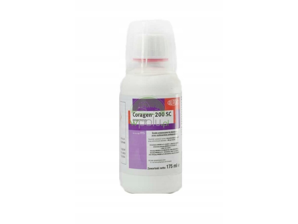 Coragen 200 SC jest środkiem owadobójczym w formie koncentratu w postaci stężonej zawiesiny do rozcieńczania wodą, o działaniu kontaktowym i żołądkowym, przeznaczonym do zwalczania larw i chrząszczy stonki ziemniaczanej w ziemniaku, owocówki jabłkóweczki i zwójkówek w jabłoni, gąsienic bielinka rzepnika, piętnówki kapustnicy oraz tantnisia krzyżowiaczka w kapuście głowiastej białej. Na roślinie działa powierzchniowo i wgłębnie. Paraliż owadów następuje w ciągu kilku godzin i objawia się zahamowaniem ruchu i żerowania szkodnika. Całkowite zwalczenie następuje w ciągu 2-4 dni od zabiegu. Środek przeznaczony do stosowania przy użyciu opryskiwaczy polowych i sadowniczych.