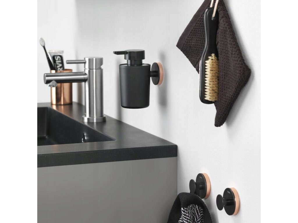Dozownik na mydło Tiger Urban w czarnym matowym wykończeniu zaopatrzony jest w dwa dekoracyjne pierścienie. Te pierścienie, w odcieniu miedzi i szarości, zapewnią po zamontowaniu subtelny akcent w Twojej łazience. Dozownik może być również zamontowany bez pierścienia, co sprawi, że dopasowanie elementów przestrzeni stanie się niesamowicie łatwe. Dozownik montowany jest na płytce ściennej, a elementy montażowe (w zestawie) są ukryte, co nadaje całości stylowy wygląd. Seria Tiger Urban to szeroki wybór innych akcesoriów do łazienki i toalety. Pięknie dopasowana całość.