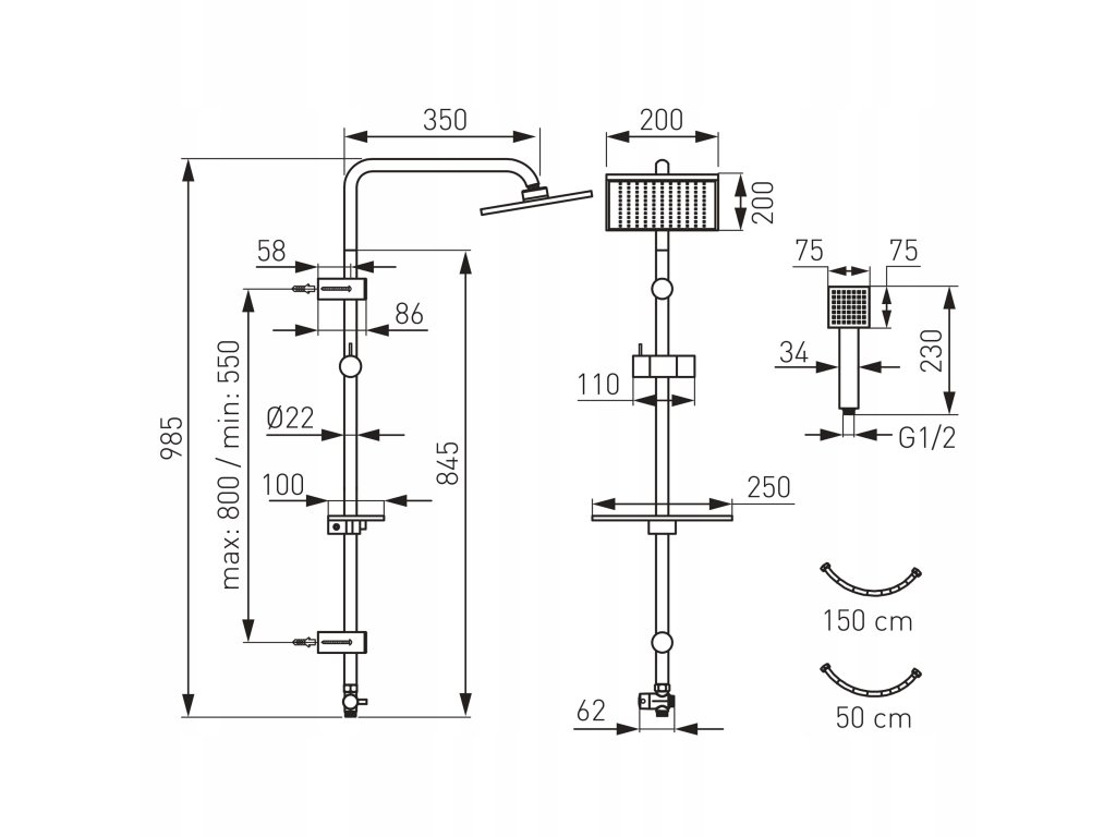 • spojovací hadica 500 mm matica G1 / 2 - univerzálne pripojenie každého sprchou a vaňou batérie </ li>