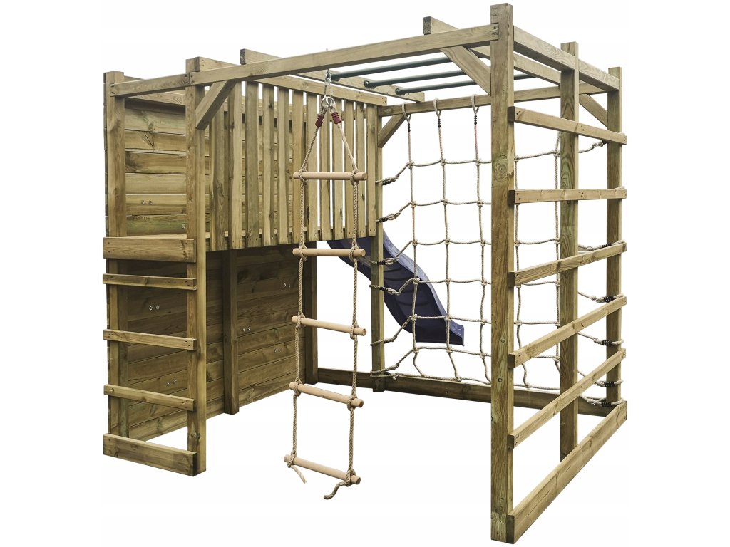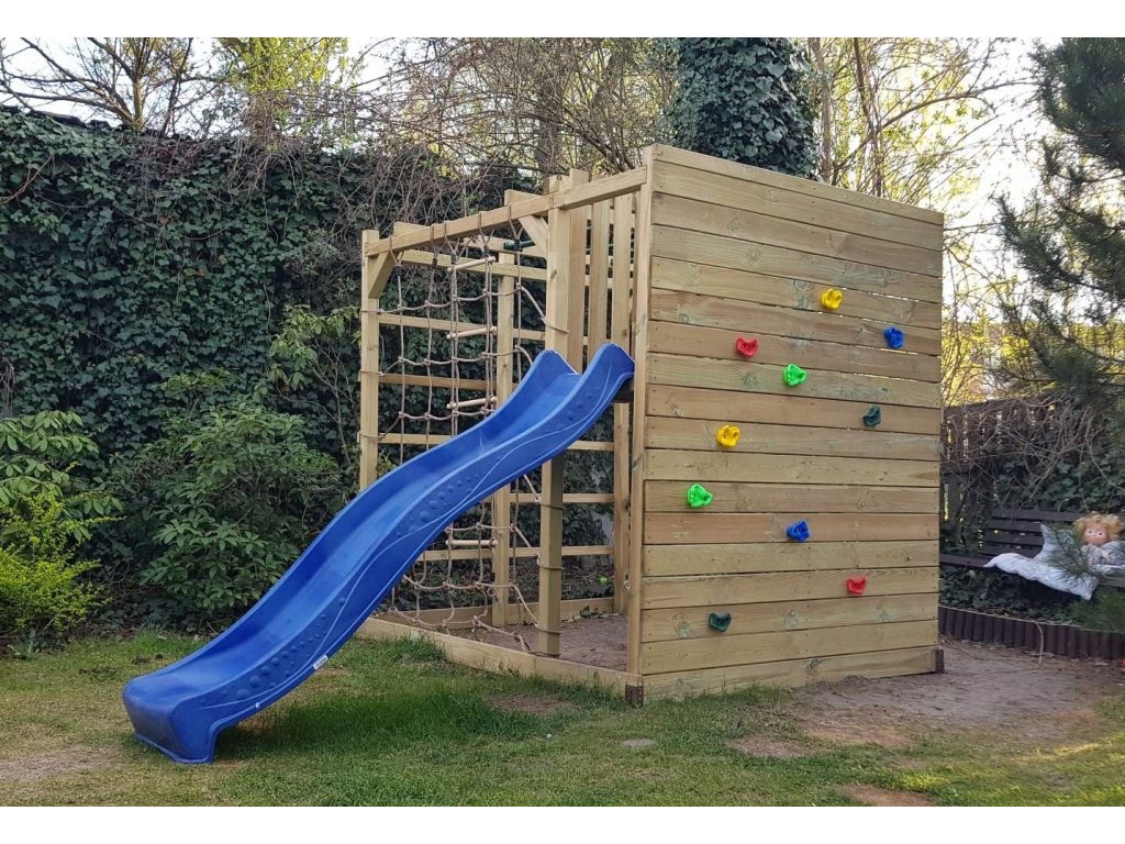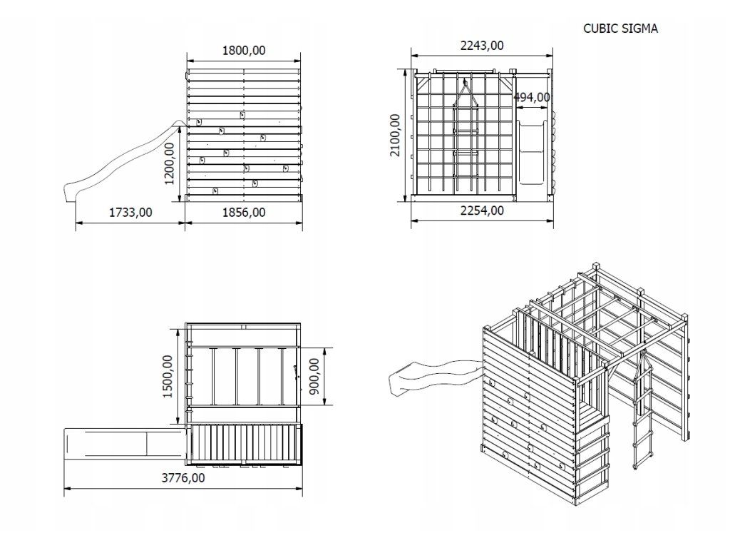 Plac zabaw Cubic Sigma to wspaniałe miejsce zabawy dla dzieci wspomagające aktywność fizyczną i zapewniająca mnóstwo rozrywki przez długi czas, dzięki licznym atrakcjom i akcesoriom znajdującym się w zestawie. Plac zabaw Cubic Sigma, posiada wszystko to czego chcą dzieci. Ścianka wspinaczkowa, ślizg, akcesoria do wspinania oraz nietypowy, atrakcyjny kształt sześcianu.