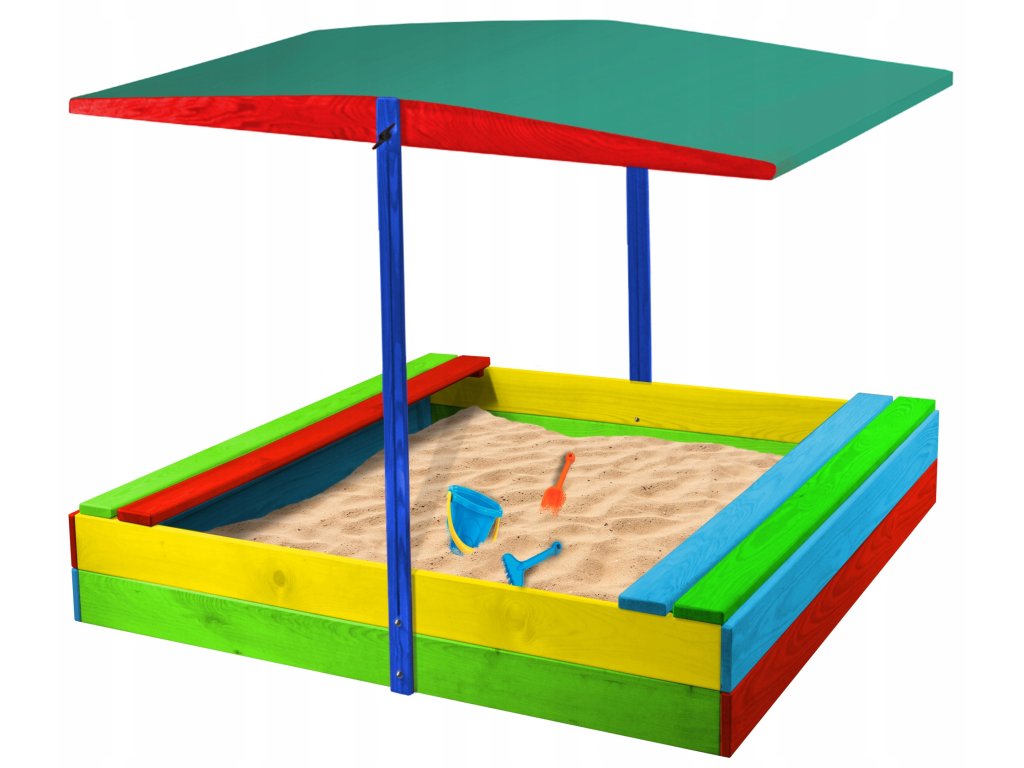 PIASKOWNICA DREWNIANA Z ŁAWECZKAMI I BALDACHIMEM + GRATIS!