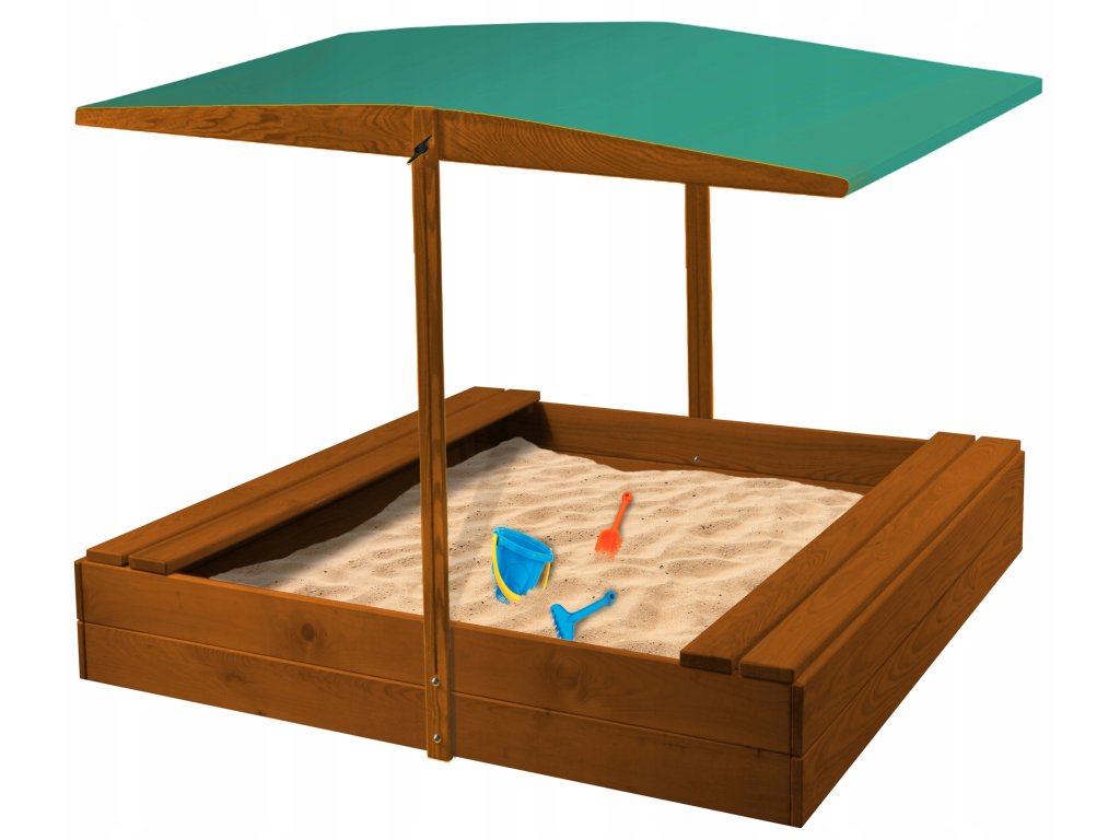 Piaskownica jest łatwa w montażu. Daszek posiada regulację nachylenia oraz wysokości. Po całkowitym opuszczeniu, spełnia on funkcję pokrywy. Piaskownica prezentuje się ładnie w każdym ogrodzie.