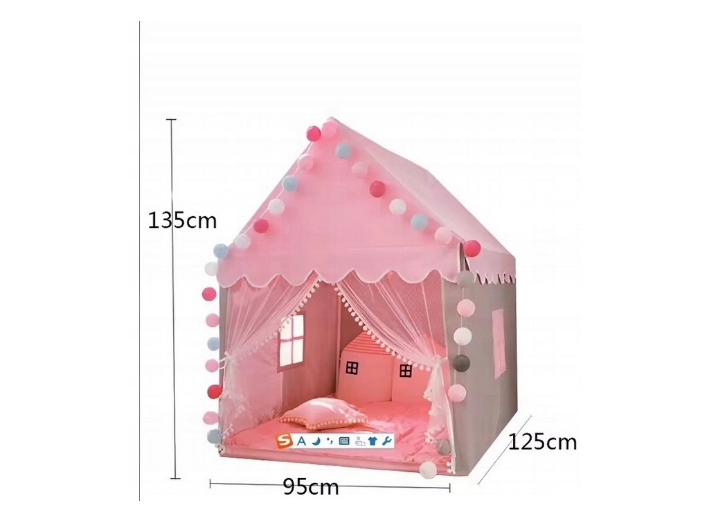 Namiot Domek dla Dzieci Zamek Palac do Pokoju Ogrodu Domu LED Roz