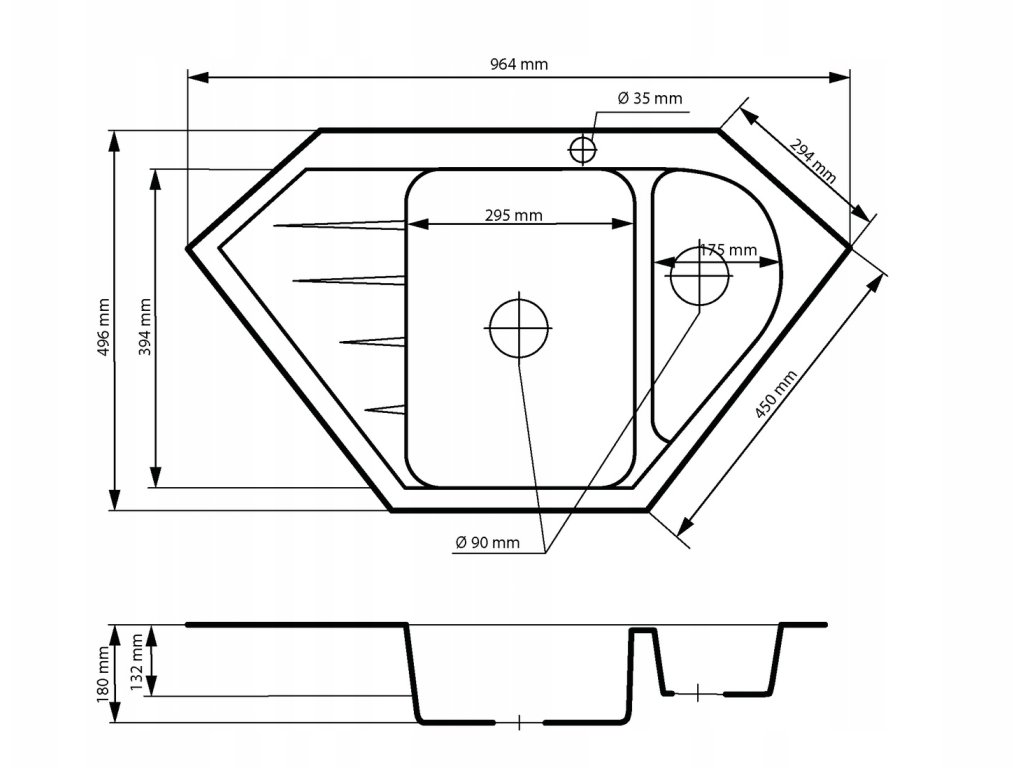 • - średnica odpływu: 113 mm
