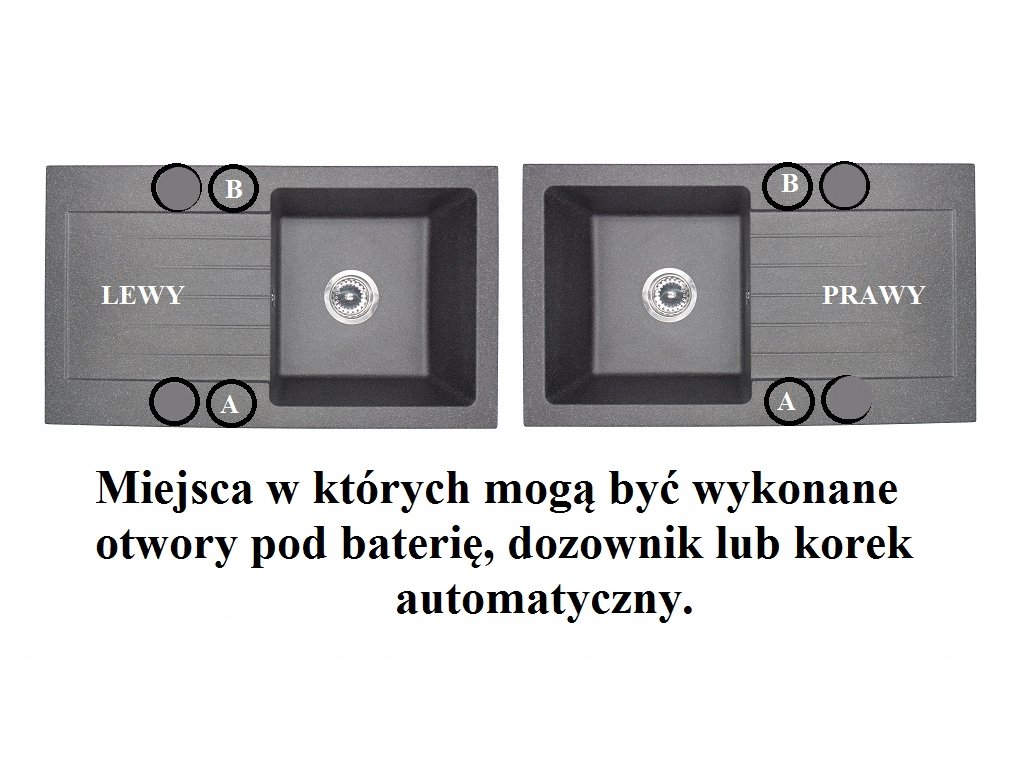 • 2 OTWORY ( B,A) możliwość zamontowania syfonu automatycznego, zaślepki bądź dozownika