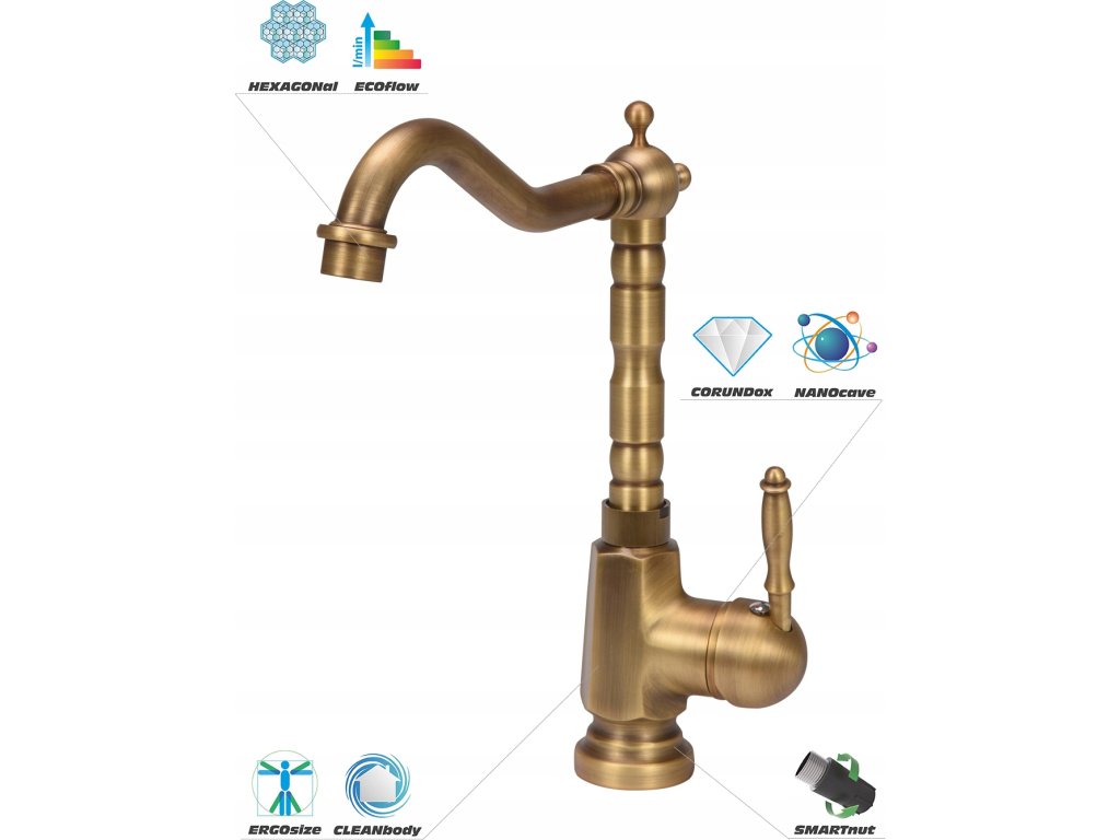 Baterie zlewozmywakowe Retro łączą tradycyjny styl i innowacyjne technologie, które gwarantują wysoką jakość i bezproblemową eksploatację przez wiele lat. Ponadczasowy design armatury doskonale uzupełni stylistykę klasycznej lub nowoczesnej kuchni. RETROlook – ponadczasowy i tradycyjny styl, który doskonale uzupełni stylistykę Twojej kuchni