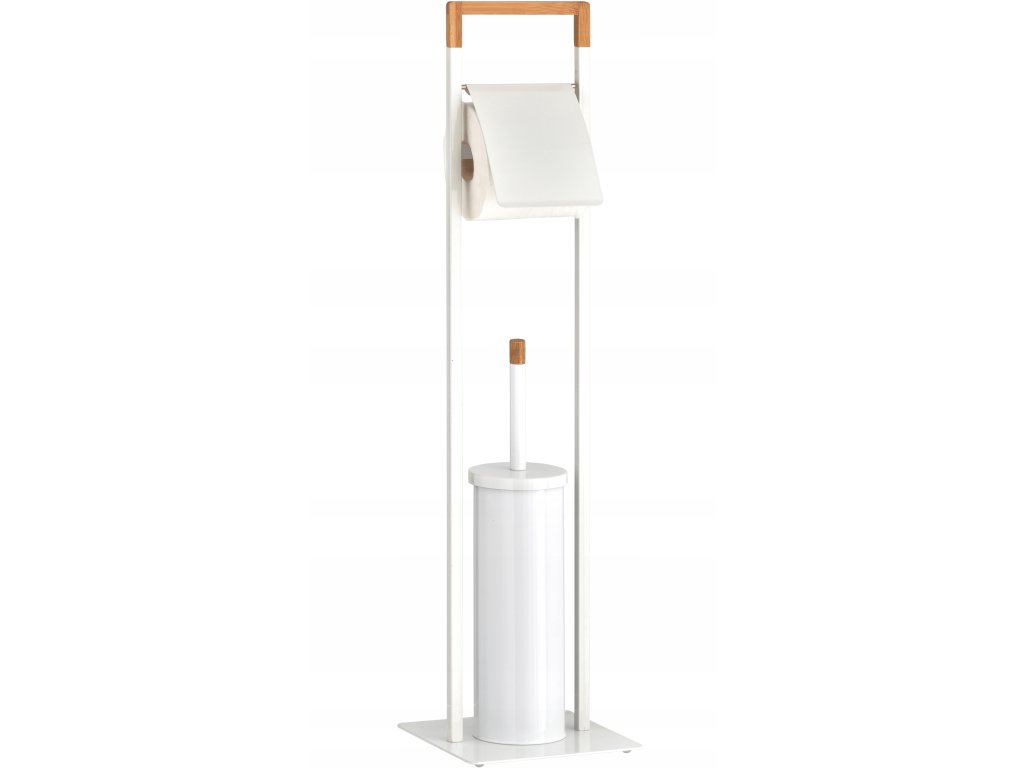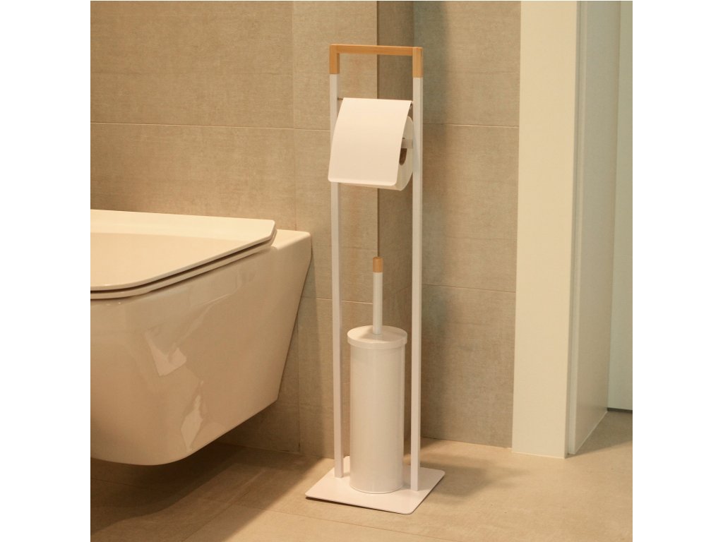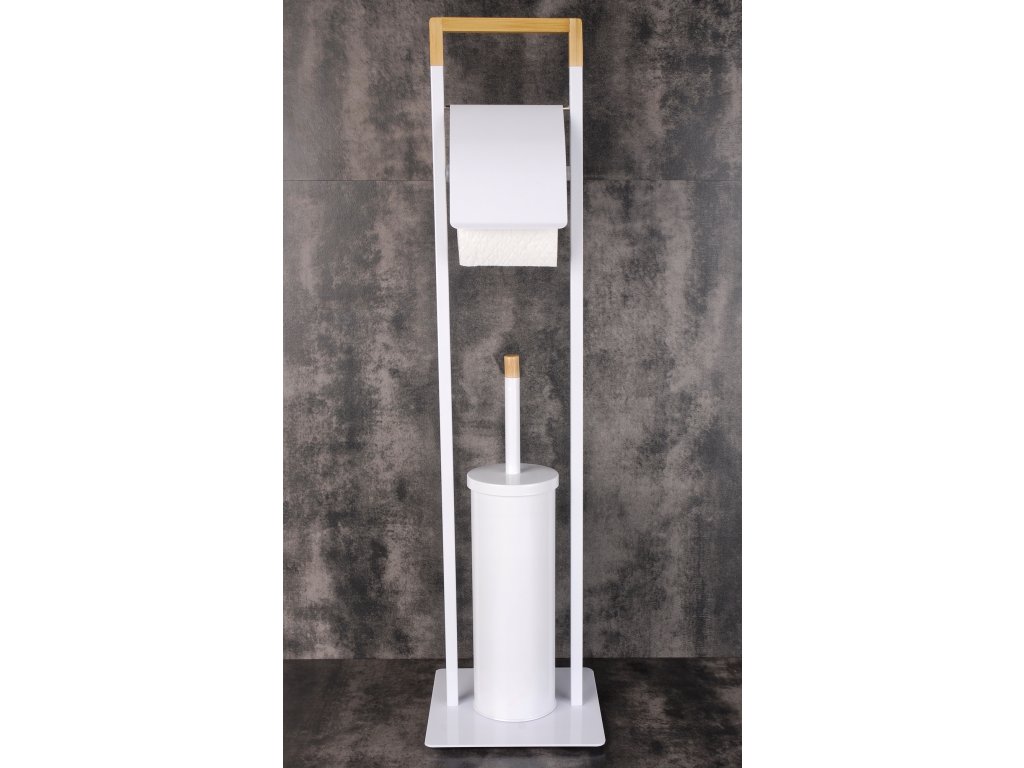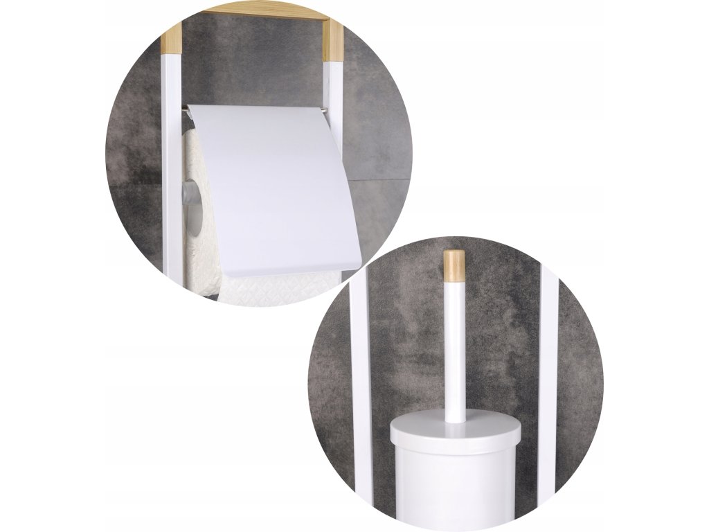 Praktické stojan WC 2v1 s držiakom Kefu toaletný papier a toaletný s chlopňami. Podstavec sa vyrobený z vysoko kvalitnej potiahnuté Rýchlosť biela (Mäkký Lesk). V. Horná časti statora a Rukov WC Kefa ozdobený prvoky vyrobený prírodného bambusové vlhkotesné. Základňa štvorcového tvaru, ktorý má nohavice V časti Štyri Silikónové podložky proti poškriabaniu podlahy kĺzanie statora a NOM. Stabilné Základňa chwianiu zabraňuje umožňuje statora a stator na jednoduchý prenos vhodnote Mies. Výborne zázemím toalety každý. V prípade ideálnom skontrolovať v v interiéri zdobené klasickom STYLE, moderné Alebo škandinávskych.