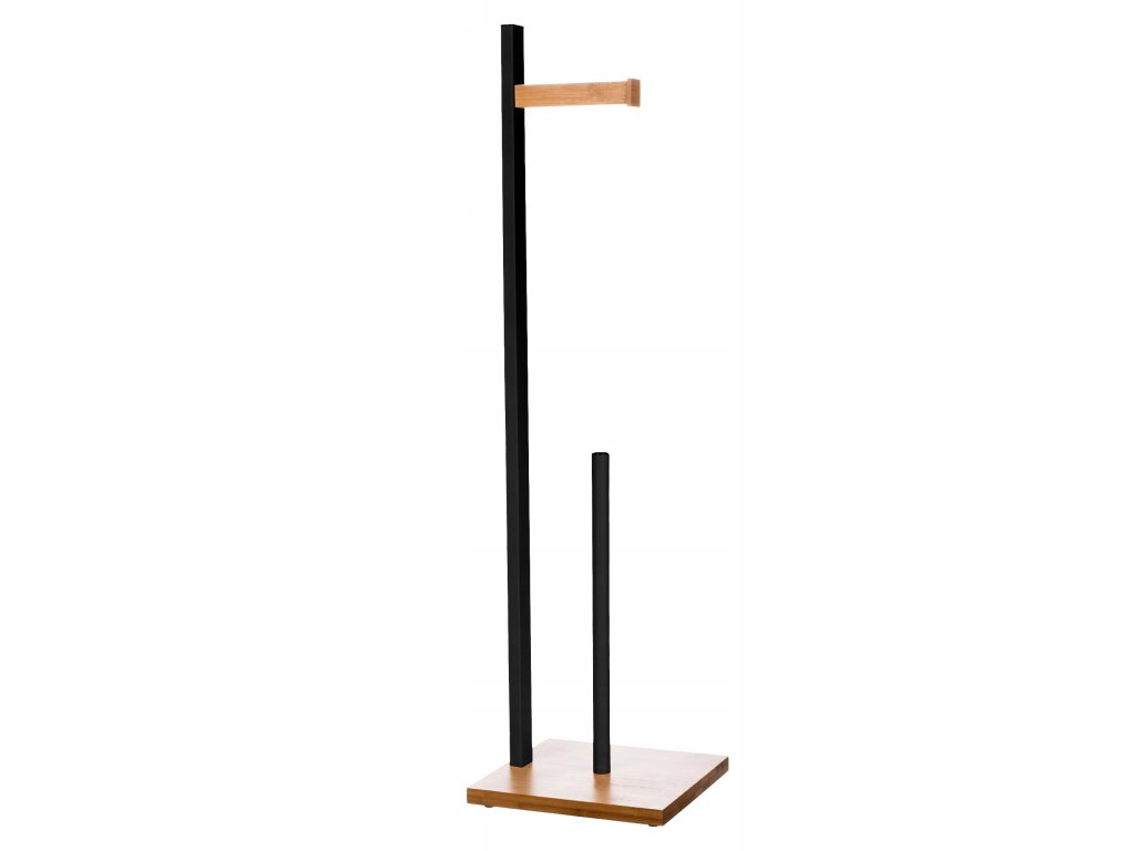 Metalowy CZARNY stojak z elementami dekoracyjnymi z bambusa – to elegancki i praktyczny stojak, który powinien się znaleźć w każdej łazience. Stojak o bardzo atrakcyjnym i nowoczesnym wyglądzie.