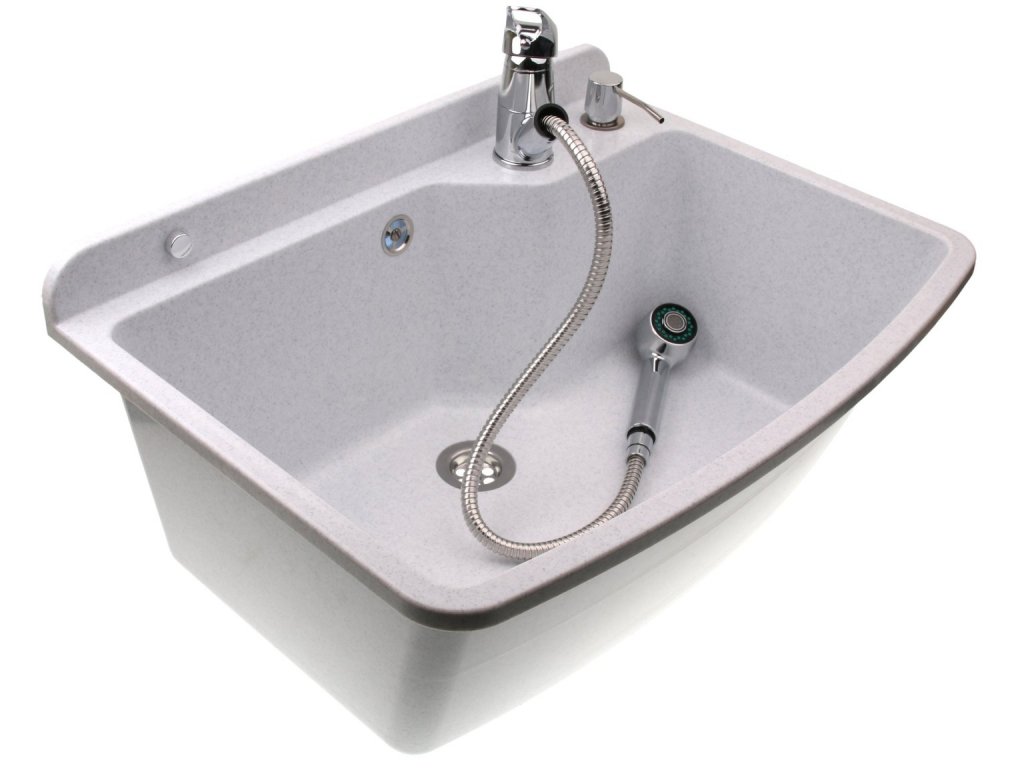 Zlew gospodarczy z baterią, dozownikiem.