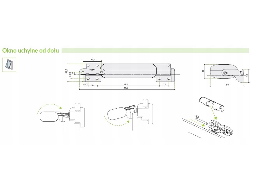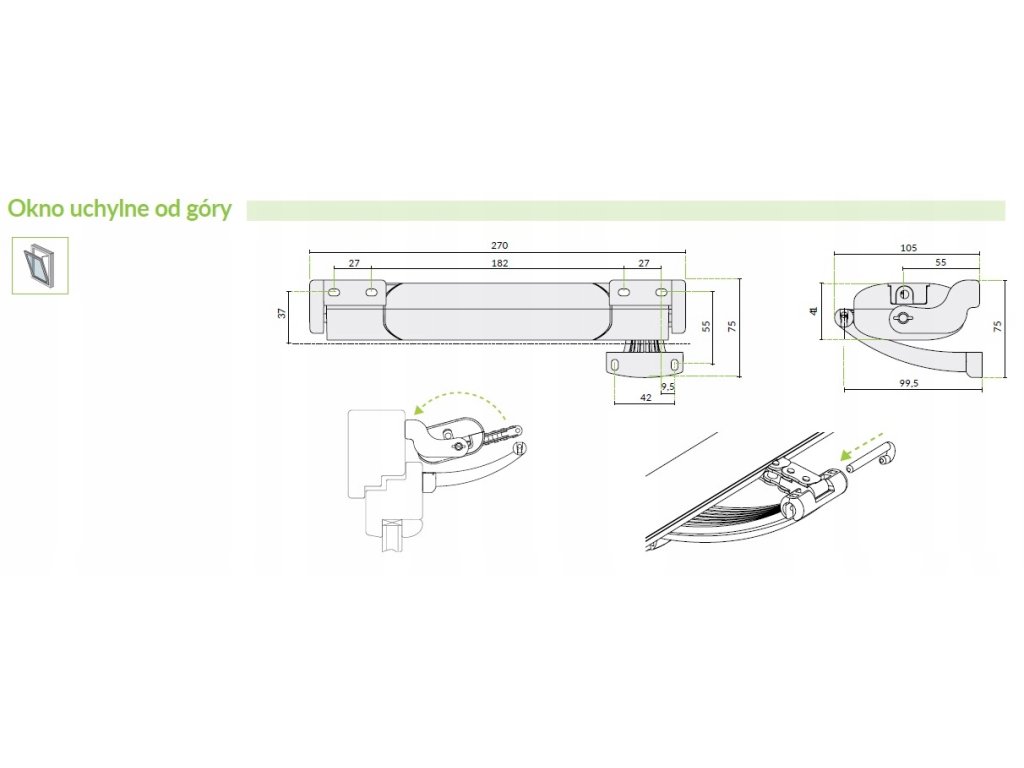 - Mocowanie siłownika - 1 kpl (konsola do okna uchylnego na zewnątrz)