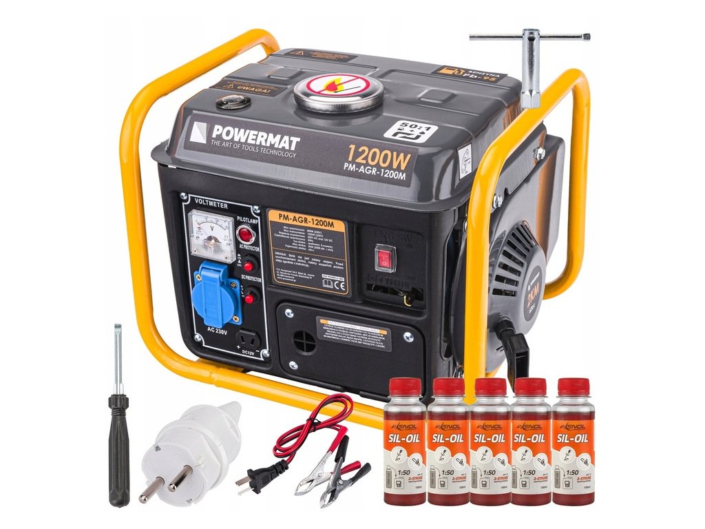 GENERÁTOR 2 HP 230 V 1 200 W (12 V DC) + 5x OLEJ 100 ml (dvojtakt)