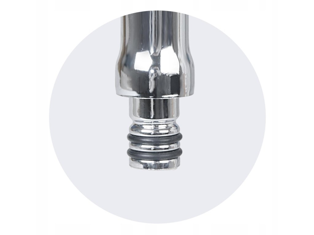 Dlhý, pružný výtok v šedej farbe. Výtok je pevne zatlačený do kohútika a je utiahnutý závitovou maticou. Prevzdušňovacia špička - prevzdušňovač - znižuje spotrebu vody až o 40%. Flexibilný výtok určený pre kuchynský drez je skvelým uľahčením pri každodennom umývaní riadu a vďaka svojej flexibilite a použitému silikónu vám dáva možnosť nasmerovať prúd vody akýmkoľvek smerom. Vyznačuje sa tiež odolnosťou voči vysokým teplotám. Inštalácia samotného poteru je veľmi jednoduchá, túto úlohu zvládne každý bez väčších problémov.