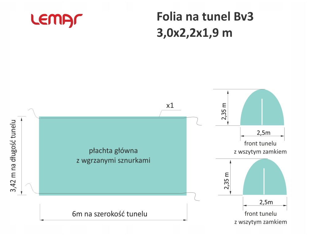 na tunel LEMAR BV3 o wymiarach 3,0 x 2,2 x 1,9 m