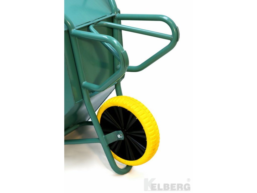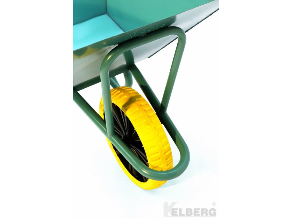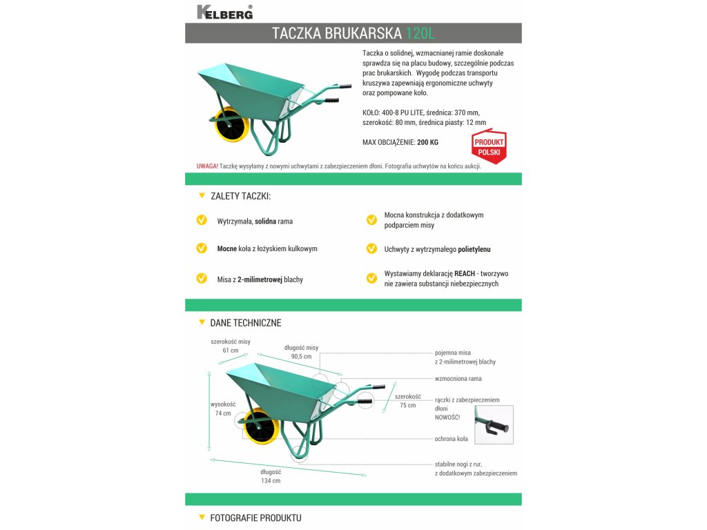 Taczka brukarska o solidnej, wzmacnianej ramie. Doskonale sprawdza