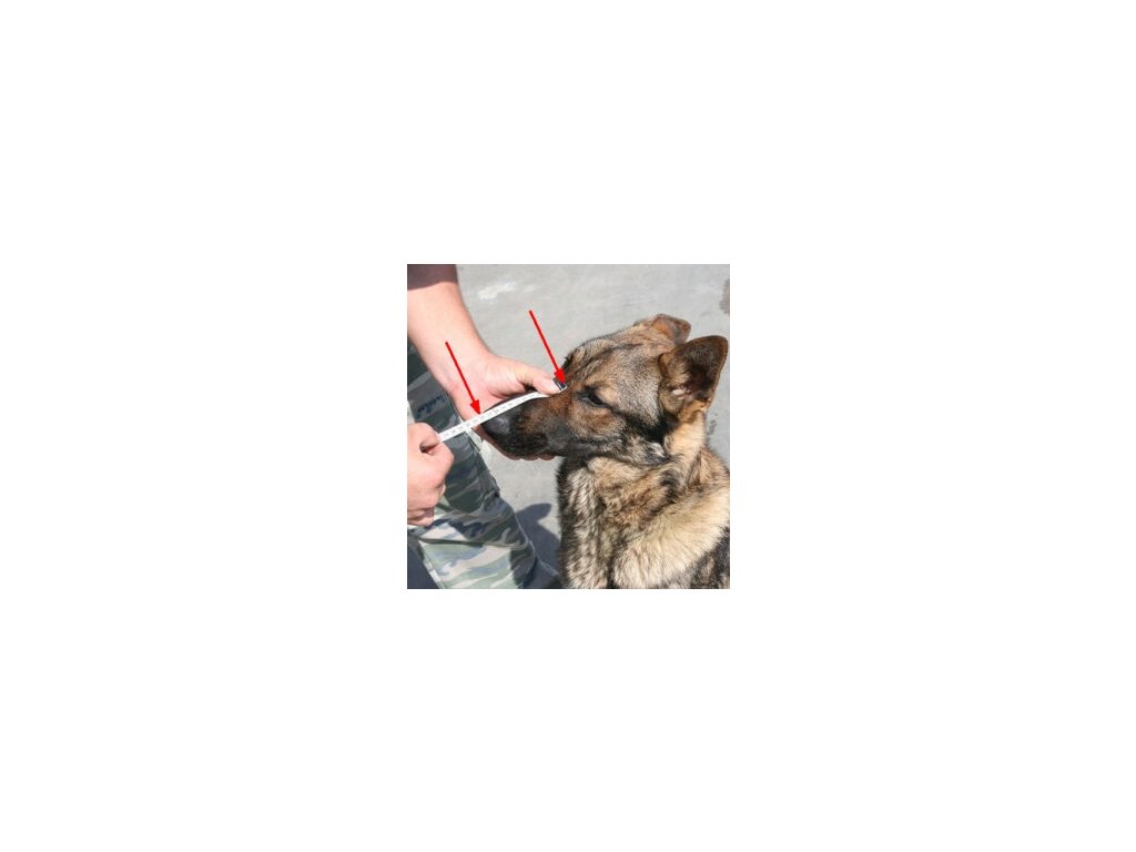 Ukážkové fotografie informujú o tom, ako merať náhubok psa.