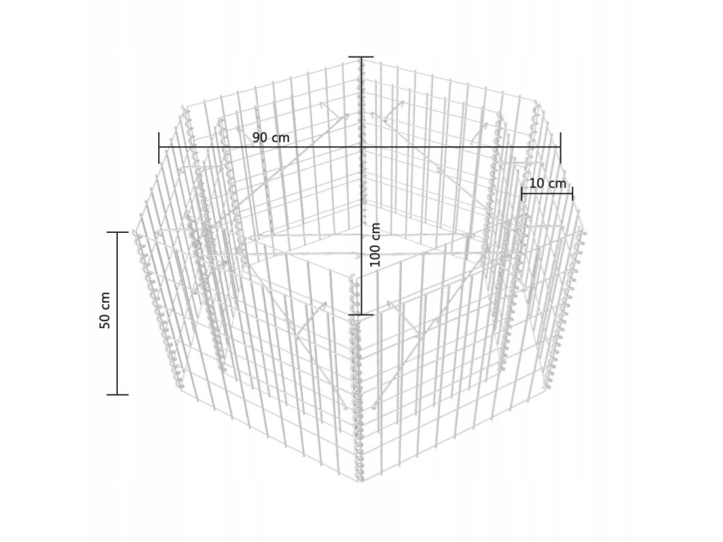 Donica gabionowa w kształcie sześciokąta 100 x 90 x 50 cm