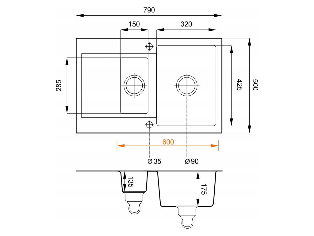 • Dodatkowo w zestawie: szablon wycięcia otworu pod montaż zlewozmywaka