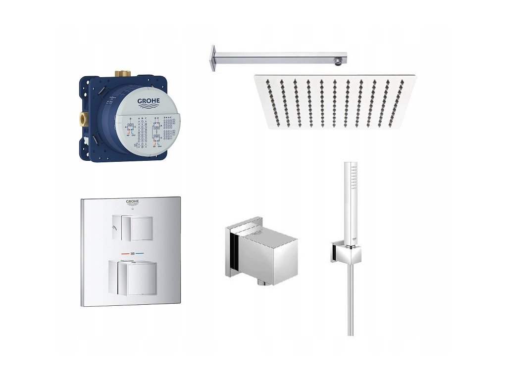 Kompletné pod omietku termostatický sprchový set Grohe daždi Grohtherm Eurocube + 30 cm Nový model