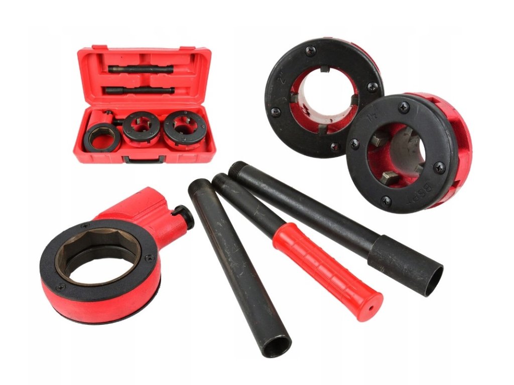 Gwintownica hydrauliczna do rur w zestawie z 2 narzynkami.Urządzenie służy do gwintowania rur i kształtek. Znajdzie zastosowanie zarówno podczas remontu jak i na budowie. Zęby gwintownicy wykonane ze stali stopowej CrV o twardości HRC w zakresie 58-62. Żeliwna obudowa narzynek.